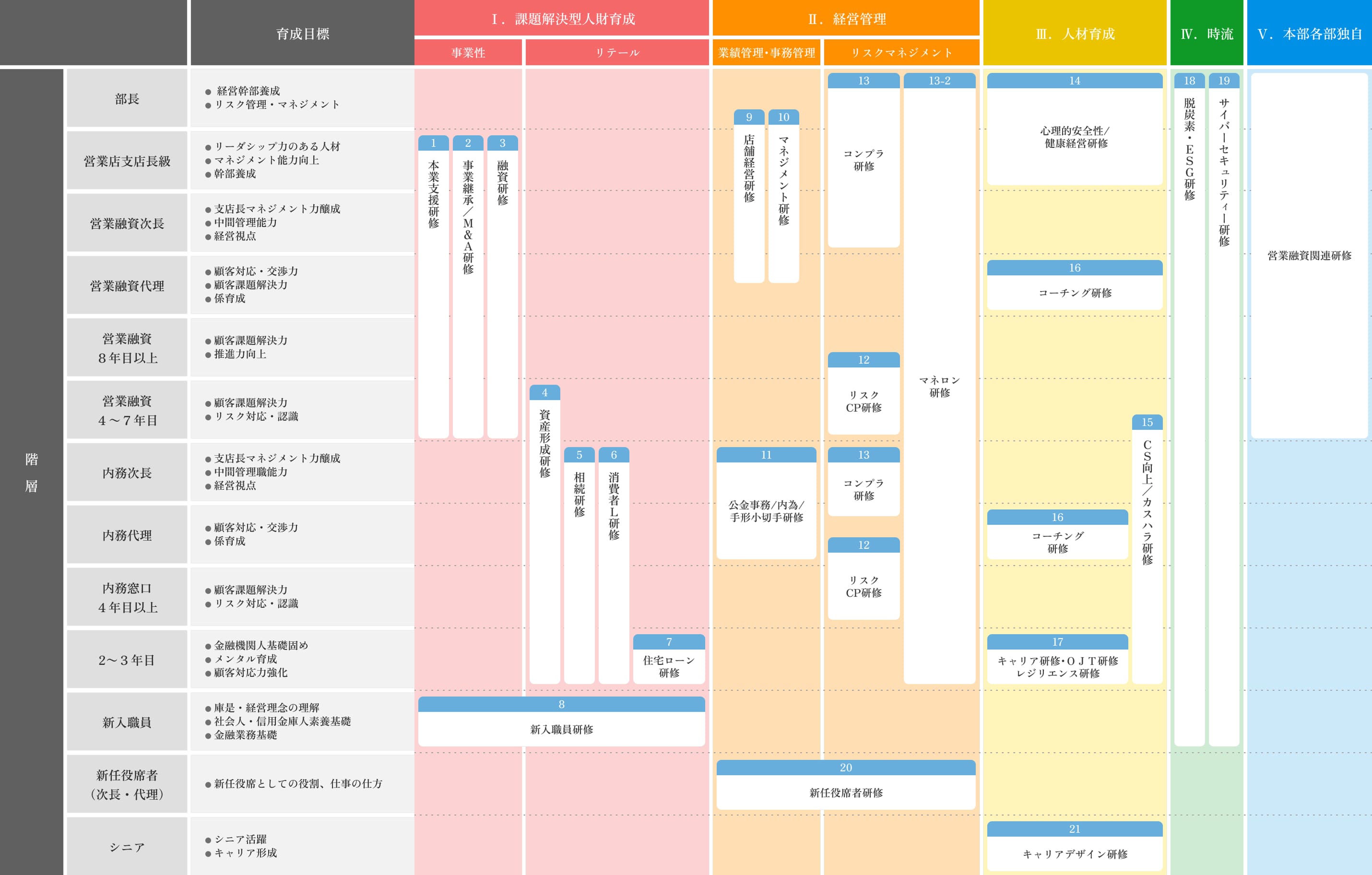 さらに2つの柱となる研修制度を通じて、段階的にスキルアップできる環境を整えています。