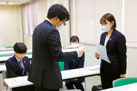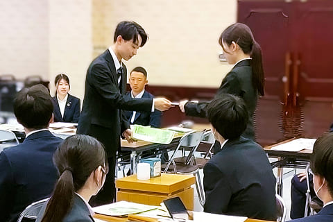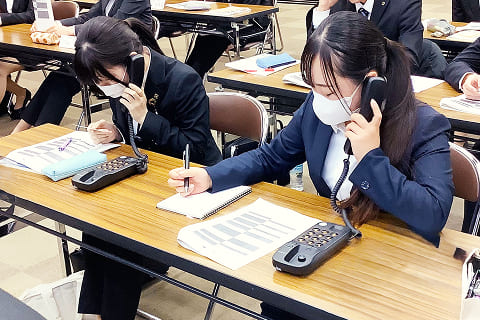 電話応対は新入職員に一番求められる業務で、実は新入職員が一番苦手なところ!みんな真剣に取り組みます。